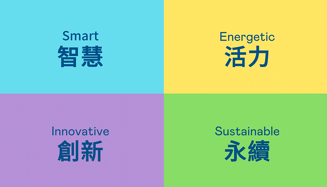 Based on dependable and staid AUO blue, we inject more brand colors—Smart Blue, Energetic Yellow, Innovative Purple, and Sustainable Green—along with diverse and dynamic geometric shapes. This visual identity conveys AUO’s transformation visually and echoes our spirit of pursuing boundless possibilities. The diversity and the movement of the geometric shapes demonstrate the possibilities created by AUO’s diverse technologies and application fields.